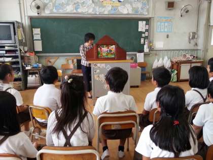1日(水)には、お話の会がありました。大正図書館の方に来ていただき、本を5冊読んでもらいました。読み手さんがとても上手な方だったので、子どもたちはみな聞き入っていました。子どもたちの反応がとてもよかったので、「いろんなお話を知っていてすごいですね。」と感心されていました。