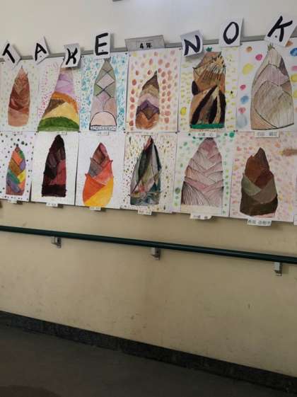 迫力満点のタケノコです。色づかいが工夫されていて、のびのびした作品でいっぱいです。