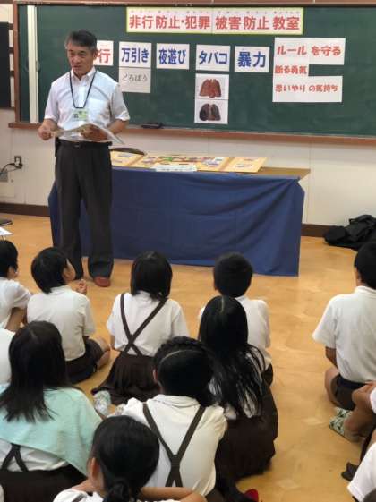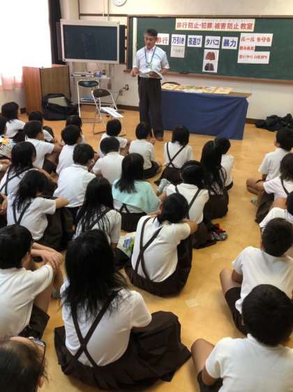 夏休み前に5年生は、非行防止教室をしました。大阪府少年サポートセンターからお越しいただき、「ルールを守ること」や「断る勇気」、「思いやりの気持ち」についてお話していただきました。講師に来てくださった方は、子ども達が主体的に話を聞き、質問をしようとしていた姿勢をみて、とてもうれしかったとおっしゃってくださいました。