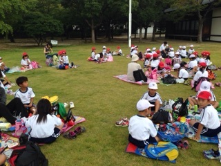 待ちに待ったお弁当では、口を大きくあけてたくさん頬張る1年生。