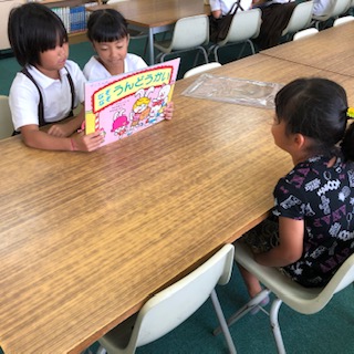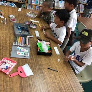 図書館開放では、本を読みあったり、友だちに紙しばいを読んだり、本にはさむしおりを作ったりしました。