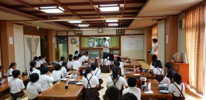 食事のあとはもちろん自分たちで片付けます。次の活動の注意点もしっかり聞きます。