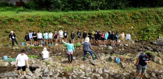 次は2組さんたちが魚をつかみます。まだ…実は11匹の魚が逃げている模様です…このままでは全員が食べることできません!2組さんがんばって!!!
