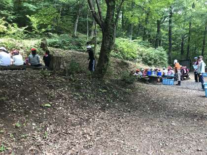 これからいよいよ、カレー作りです。登山中にこどもたちから「早くカレーが食べたいな」と多く聞きました。カレー作りの説明をきちんと聞いています。