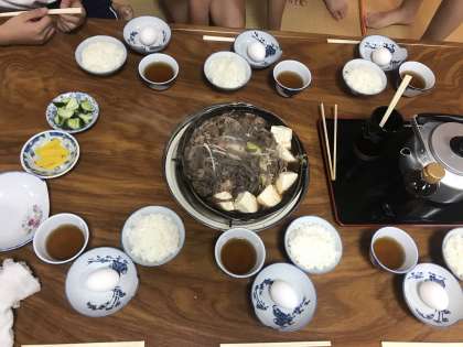 夜ご飯には、すきやきをいただきました。