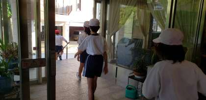 元気いっぱいの子どもたちは、朝のつどいに出かけました!