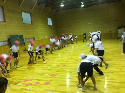 赤チームは赤に裏返して、白チームは白に裏返す室内オリンピックをしました。
