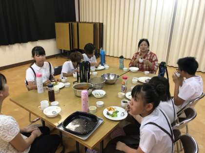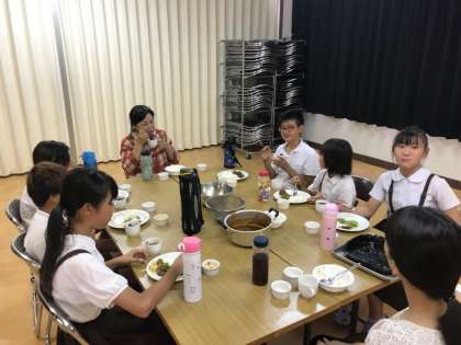 給食委員会は、給食献立コンクールに応募するために、夏休みに学校に集まって、栄養いっぱいの献立を考えました。実際に作って食べると、バランスもよく、簡単に作れるので、みんなにぜひおすすめしたいそうですよ