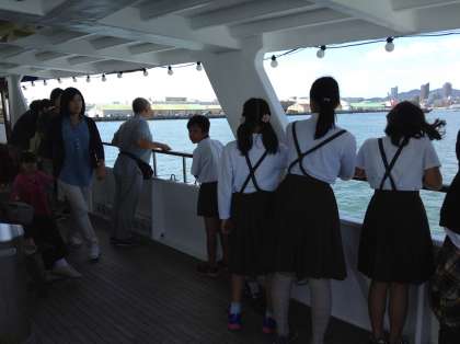 10月7日(火) 台風一過の本日、校外学習で神戸方面へ行ってきました。まず、元町から神戸港まで歩き、神戸クルーズをしました。三菱重工のドッグで潜水艦を見て、神戸空港の近くまで行きました。昼食をとり、海洋博物館とカワサキワールドの見学をしました。子どもたちからは、「もっと見学したい」の声が聞かれましたが、時間の都合で次のポートタワーへ。ポートタワーを終え、南京町を見学して帰りました。施設や交通ルールもきちんと守り、一日活動することができました。