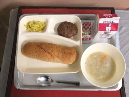 2学期最初の給食は、みんなが大好きな焼きハンバーグでした。