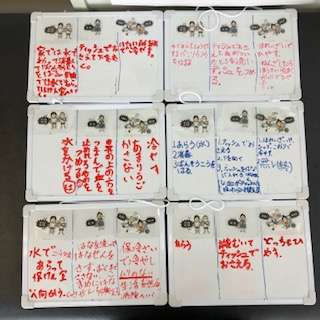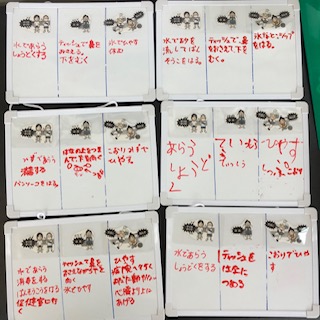 発育測定の前には、けが(擦り傷、切り傷、鼻血、だぼく、ねんざ)をした時に、どうしたらよいか、みんなで考え発表ました。
