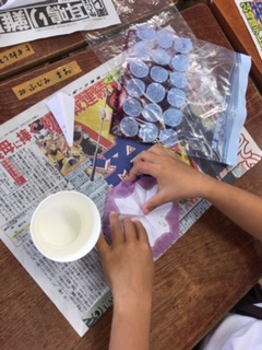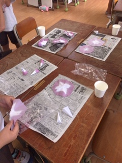 キレイに染めることができ、素敵なアサガオの花が完成しました!