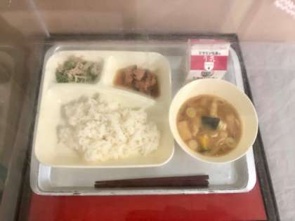 「みそ汁」は、旬のかぼちゃ、うすあげ、たまねぎ、にんじんを使用したみそ汁です。