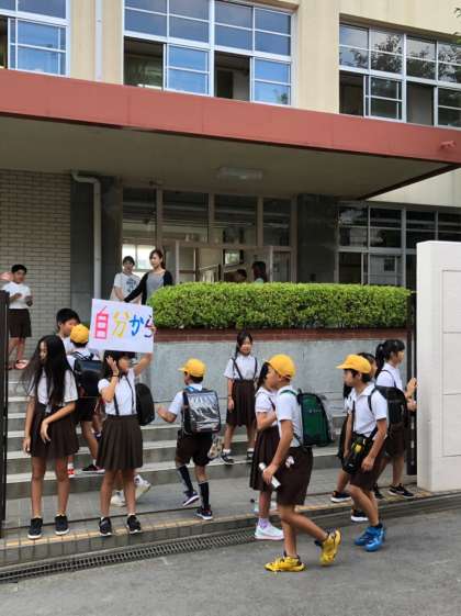月曜日から児童会が中心になって朝のあいさつ運動を行っています。