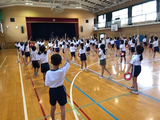 学習後の「エイサー」は、いつもと一味違い、より元気いっぱいにパーランクーを叩いて、大きな声で心を込めて踊ることができました。