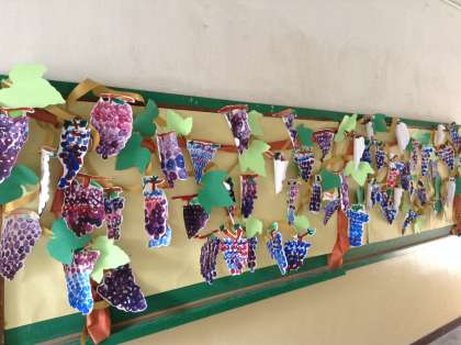 先日ホームページでお伝えしました、1年生の掲示板のぶどうですが、数が増えました。実っています。ぜひご覧ください。