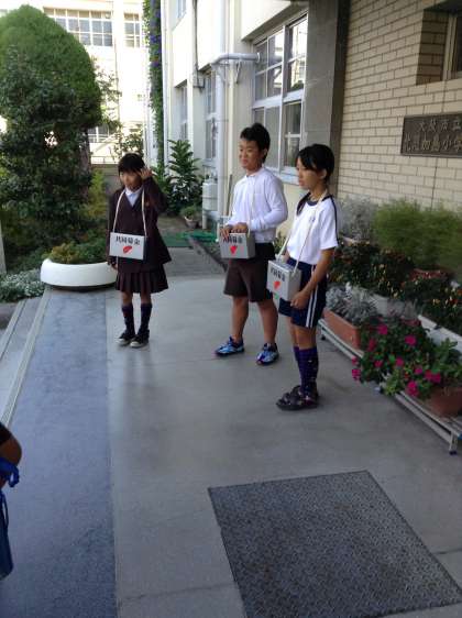 10月14日(火)〜20日(月)まで赤い羽根募金です。代表委員の子どもたちが、登校時に正門前で活動しています。