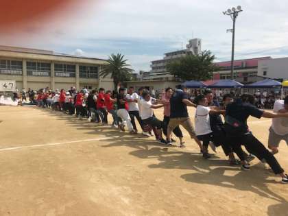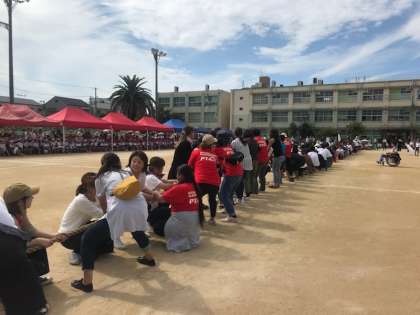 PTA競技の綱引きです。たくさんの保護者のみなさまが参加してくださいました。