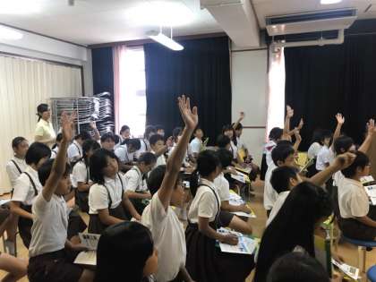 また、簡単に雲を作ることができる方法も教わり、子どもたちは、夢中になって話を聞いていました。