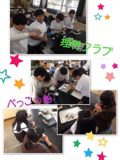 今週の理科クラブでは、ざらめをとかしてべっこう飴をつくりました。