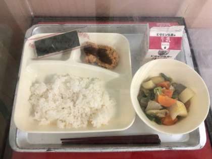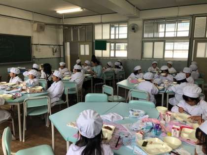 「みそカツ」は、豚肉を1人2切ずつ手作りのフライにします。卵アレルギーの児童も食べられるように、卵は使用していません。からめるタレは、八丁みそと赤みそを合わせることでまろやかに仕上げています。