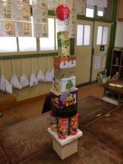 ご家庭から持ってきていただいた空き箱で、図画工作の時間にみたて遊びをしました。