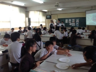 3時間目プリマハムの方に来校していただいて、保存食についての話をしていただきました。5年生は農業、水産業の学習をしたばかりです。たくさんとれたときにどのように保存しているのかを知ることができました。
