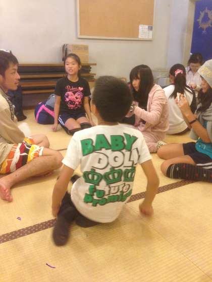 石ころアートを終えた後、部屋割りを行いました。それぞれ割り当てられた部屋で荷物整理をし、過ごしています。班長は集まって班長会議でこれからの活動を確認しています。この後、スタンツ練習をしますが、風がきついのでキャンプファイヤーがキャンドルファイヤーに変更になるかもしれません。