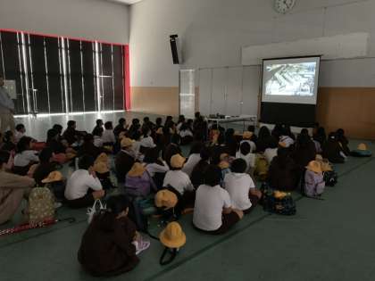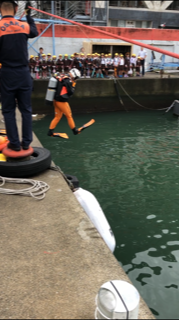 始めに、水上消防署のことをわかりやすく説明するDVDをみんな集中して、しずかにみていました。その後に消防艇「まいしま」を見に行きました。水面ぎりぎりまで船の高さを落とすところを直接見て、みんな「おぉっ!」と驚いていました。また、特別に救助訓練を見させていただきました。海に飛び込んだり、海の中での探索方法を見させていただき、みんな大興奮でした。救助成功の時は、子ども達も喜んで自然と拍手が起こっていました。