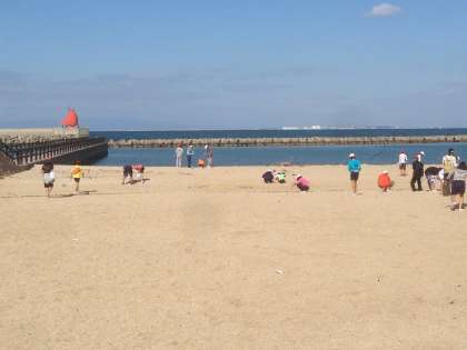 ただいま、貝殻アート用の貝殻拾いをしています。浜からは関空や明石海峡大橋、淡路島が見えます。関空からは飛行機の音が聞こえてきます。この後、カヌーに乗ります。