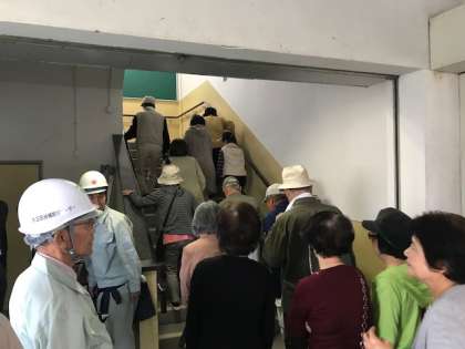今日は、北恩加島小学校で地域防災訓練が行われました。備蓄倉庫の場所を確認し、毛布と物干し竿を使った救急搬送の仕方、煙体験、救命救急のビデオをみました。