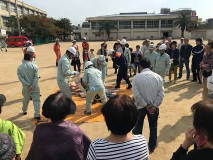 地域のみなさんや子どもたちも集まり、みんなで訓練をすることができました。