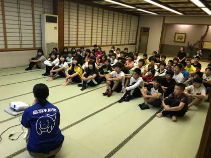 夕食の後は、鳥羽水族館の職員の方がホテルに来られ、鳥羽水族館のことについて様々なことを学びます。