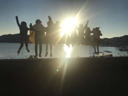 とても気持ちいい朝日なので、みんなで見ています。