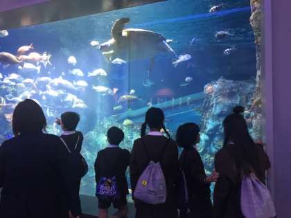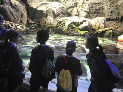 昨日のセミナーもあり、水族館の動物たちに興味津々です。