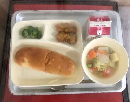 「スープ煮」は、鶏肉、じゃがいも、キャベツ、たまねぎ、にんじん、青みにむきえだまめを使用し、塩、こしょう、ローレル、うすくちしょうゆ、チキンブイヨンで味付けした煮ものです。