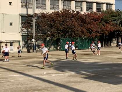 ソフトボールや野球の得意な子が中心になり、ボールの投げ方や取り方を教えています。「めっちゃ上手やん!」「おしいな!」と優しい言葉がけとともに行われるキャッチボールでした。
