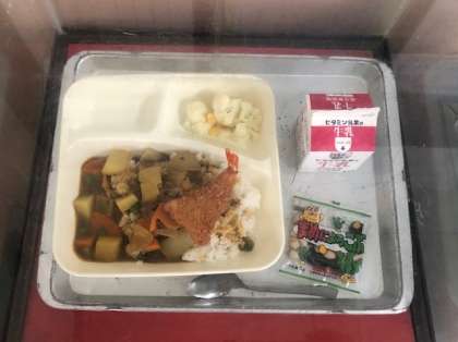今日の「えびフライカレーライス」には、星型のラッキーにんじんが入っています☆