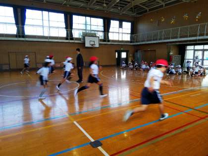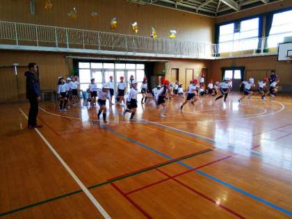 本日の出前授業は、天候の影響により講堂で行われましたが、子どもたちは短い距離を全力疾走していました。3年生と同様、荒川大輔選手や宮川洋也選手から速く走るポイントをたくさん指導していただいたので、次は運動場で実践してみようと思います。