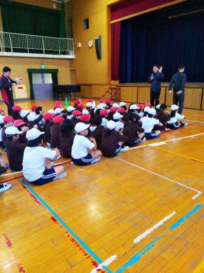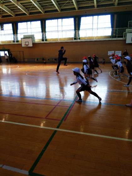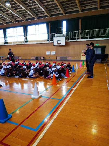 3年の子どもたちの発達段階に合わせ、速く走れるようになるためのコツを教えてくださいました。まずは、ジャンプから教えてもらい、スキップの仕方、そして走る前のスタートの姿勢などを教えてくださいました。子どもたちは体を動かしながら、走ったり跳んだりする楽しさを感じることができました。