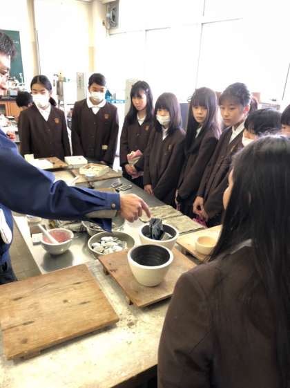 セラミック科では、ガラス工芸や陶芸について見学させていただきました。土を混ぜる過程や、作っていく過程を丁寧に教えていただきました。