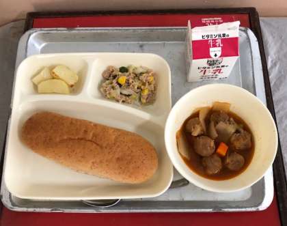 「ミートボールのケチャップ煮」は、肉だんごを主材に、たまねぎ、にんじん、マッシュルーム、青みにむきえだまめを加え、ケチャップで味付けした洋風の煮ものです。