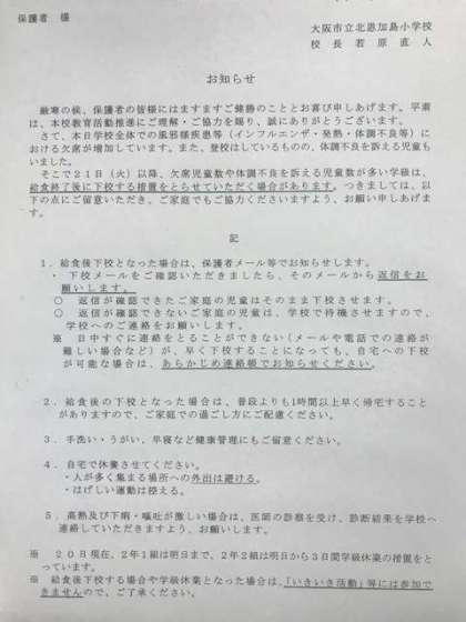 風邪様疾患等で欠席児童が増加したときの対応についてお知らせします。