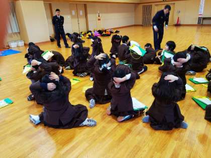 地震が来たときの対処の仕方では、ビデオを見せてもらい、実際どうなるか小さな模型で実演してくださいました。津波の話もあり、子どもたちは真剣に聞いていました。