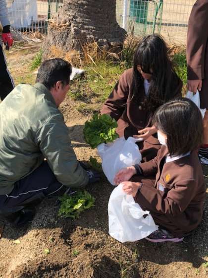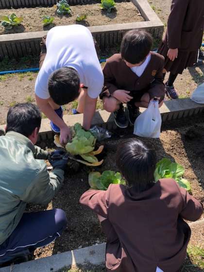 昨日は、環境委員会のみんなで、いままで育ててきた野菜の収穫を行いました。とってもあたたかくて、春がやってきたような1日でした。
