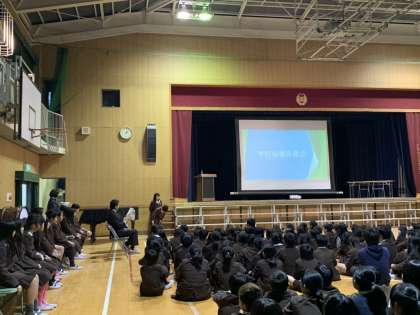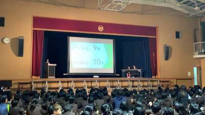 保健委員会からオリジナルの動画を用いて「早寝早起き朝ごはん」の大切さについて、発表がありました。