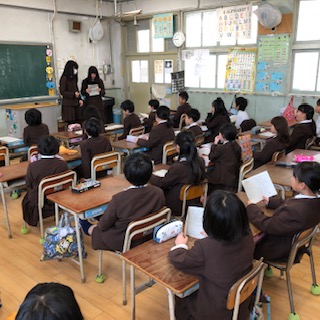 今日は、5年生と一緒に卒業を祝う会の出し物の練習をしました。みんなで6年生を送るために、練習しています。