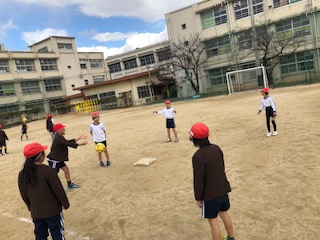今日は、寒さに負けず、元気にキックベースをしました。ボールをキャッチしたり投げたり一生懸命に練習をしました。