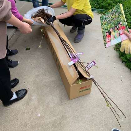 中央卸売市場を通じて、青森県からりんごの苗木を4本いただきました。