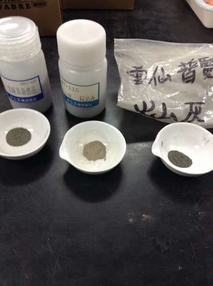 「大きさが違う」「砂は丸みがあるけど、火山灰はとがっている」「色が違う」と二つを比べた答えを出してくれました。